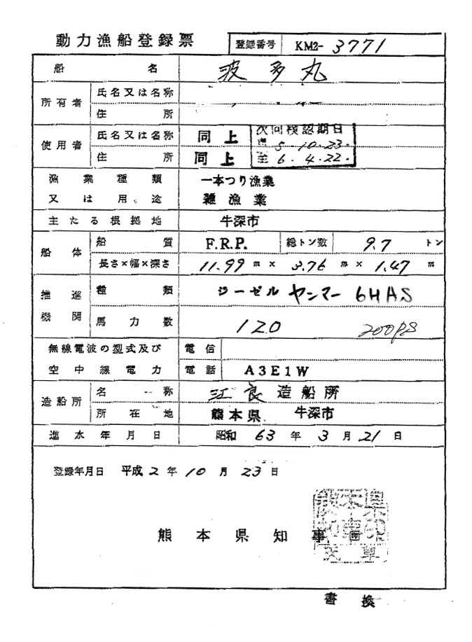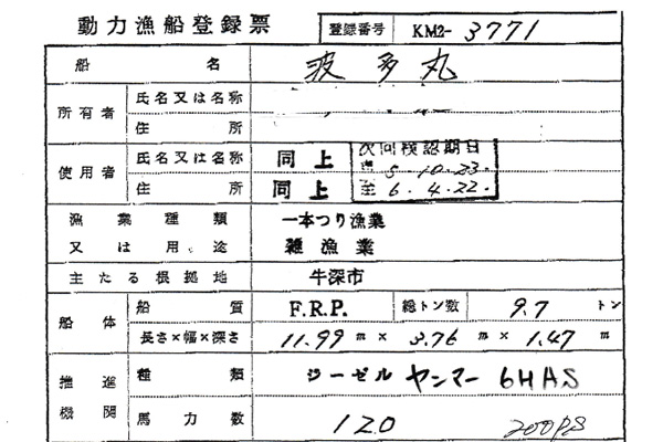 | 備考 | ふぐ縄漁、もじゃこ漁に使用 キール有 |